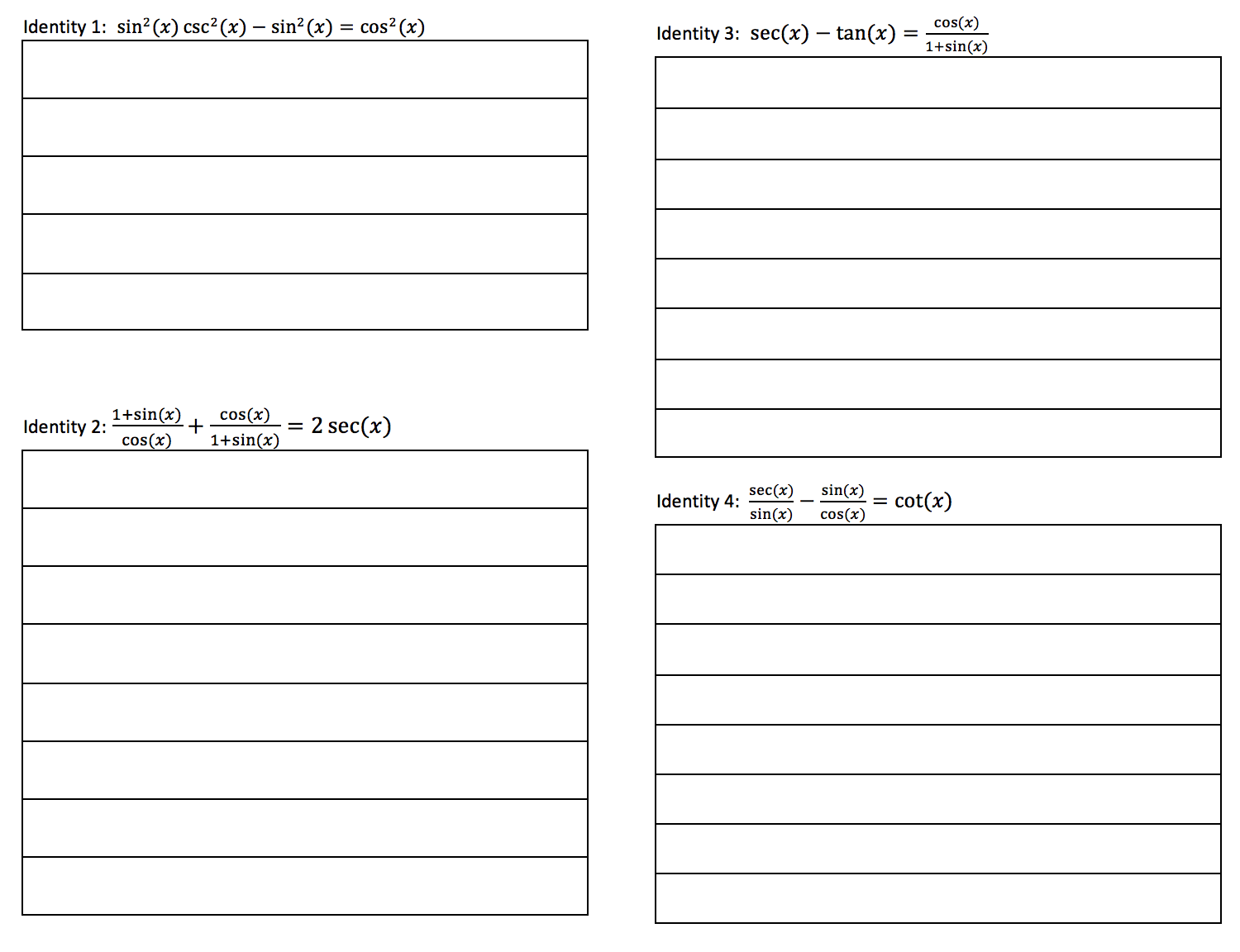 Fundamental trigonometric identities worksheets feature problems involving quotient identities this video introduces the basic procedures to successfully graph a piece wise defined function. Animal classification for kids worksheets. Solve for values of 0 between and 90°. Trigonometric ratios and solving using trig notes sheet/graphic organizer freebie!!!!this. And equations pdf view download unit 8 review worksheet solutions note the solution to date_ worksheet the basic 8 trig identities simplify each expression to a single trig function or number 1 sec ? Simplify each expression to a single trig function or number. Determine if the relationship is proportional worksheet. Sin x cos x 1− cos2 x. List the basic 8 identities. Hyperbola sin and hyperbola cosine are considered as the basic hyperbolic functions. Math260â€week 4 lab name:part i: Prove the trigonometric identity sin θ cos θ (tan θ. Worksheet by kuta software llc.